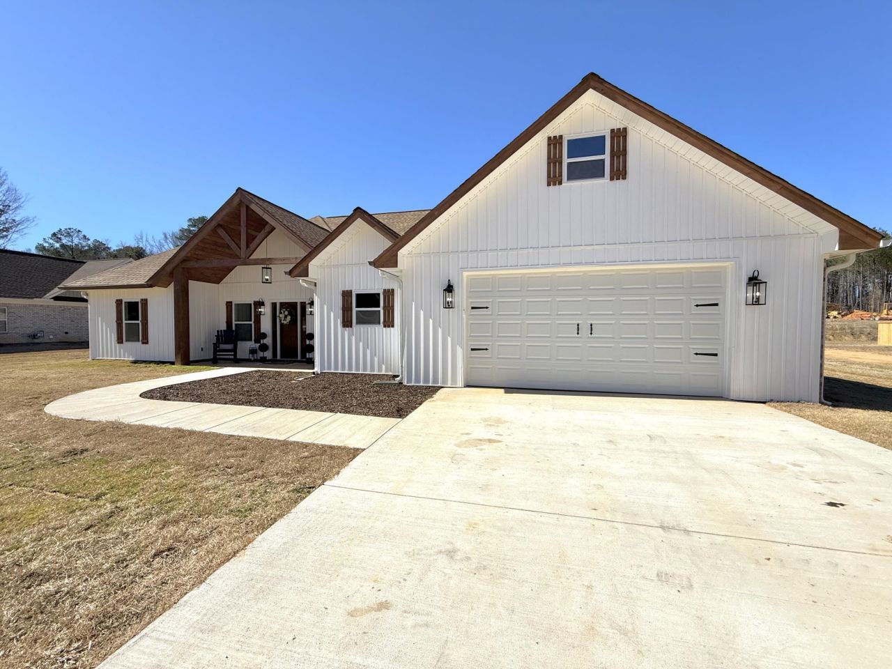 Welcome to this stunning new construction home offering 2100sq.ft. Of thoughtfully designed living space in the desirable Wood Estates Subdivision. East Webster School District. This beautiful home features an open floor plan. The spacious living room boast a vaulted wood ceiling and cozy gas logs. Primary bedroom also features vaulted wood ceiling in this gorgeous private retreat, En suite is complete with double sinks, soaker tub, fabulous walk- in closet and gold fixtures. The kitchen is a dream with custom cabinetry, stylish vent-a-hood, quartz countertops and large walk- in pantry. Enjoy outdoor living with a covered front porch and covered back patio. Two car garage provides convenience and storage. Don't miss this exceptional home.separate shower