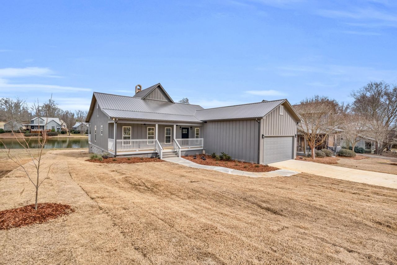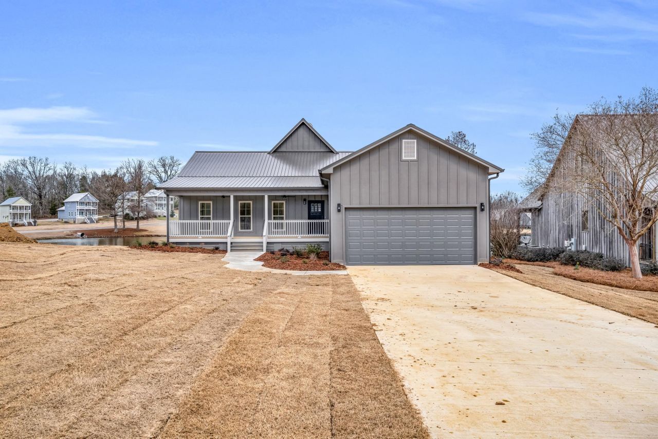 Welcome to Browning Creek Subdivision! This new-construction 3BR/2BA waterfront home combines elegance and comfort in a serene setting just minutes from Mississippi State. Step inside to a grand living room with soaring 30-foot ceilings and large windows framing peaceful water views. A beautiful multi-level deck leads down to the water, creating the perfect spot for morning coffee while listening to the fountain or enjoying MSU game days with friends. The open layout is filled with natural light, and the home also offers a spacious 2-car garage for convenience. Blending country serenity with modern design, this home is ideal as a permanent residence or the ultimate game-day retreat.