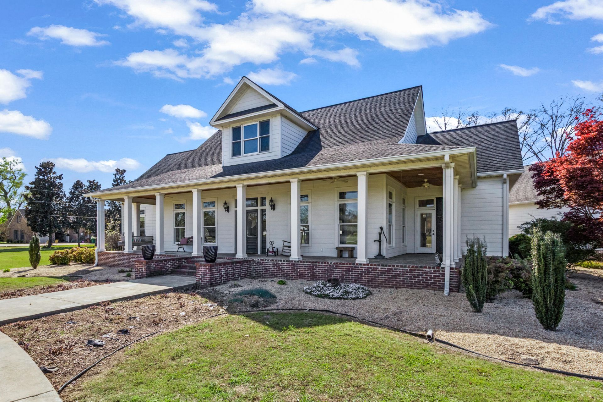 Charming farmhouse-style custom built home offering spacious modern living, highlighted by a beautiful wrap around porch perfect for enjoying the peaceful setting on 1.9 acres. This inviting 4,980 sq ft home with 5 BR, 4.5 ba features generous living spaces designed for comfort. Beautiful kitchen including Pierce cabinets and an industrial 6 burner oven w/ griddle, formal dining room, office space, large laundry room with sink, cabinetry, and plenty of counter space adds everyday convenience. Relax in the sunroom overlooking backyard or step outside on a covered brick patio overlooking the inground pool, complete with an iron fence and an outside shower and toilet. A three-bay shop constructed in 2023 offers excellent space for storage, hobbies, or equipment. A wonderful blend of timeless