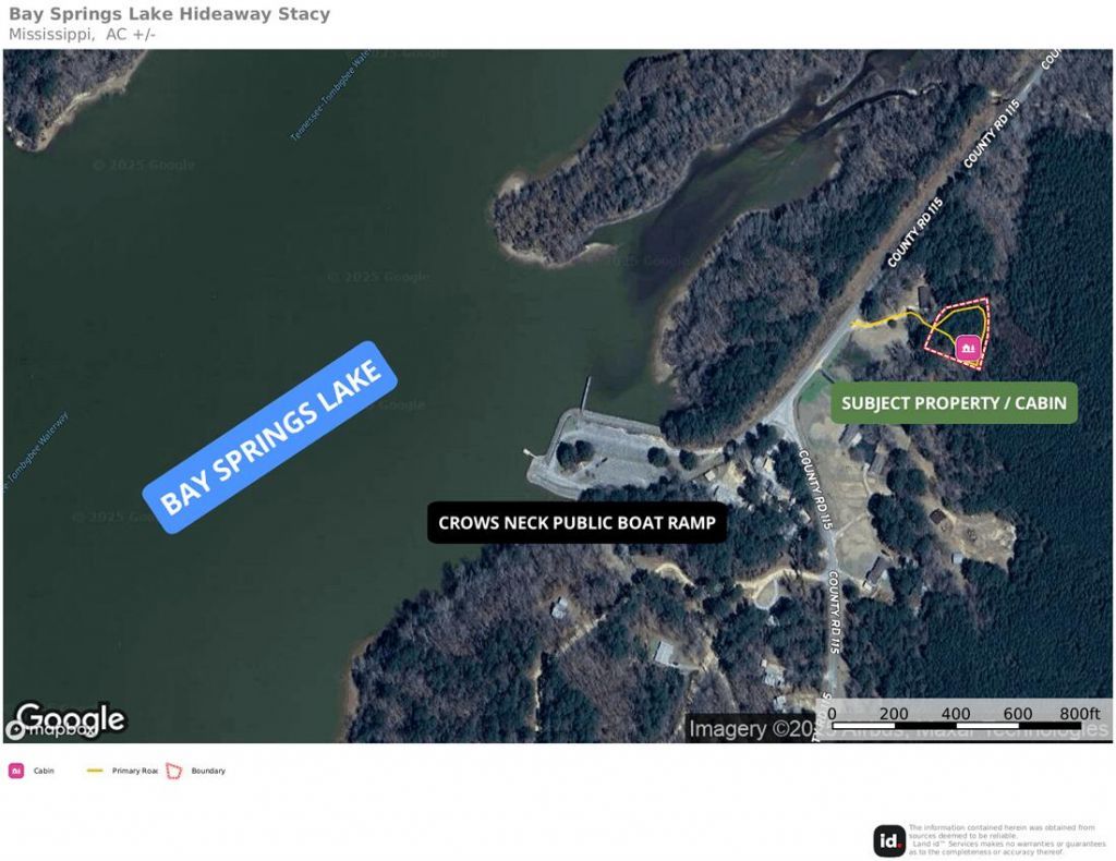 BAY SPRINGS LAKE CABIN - 3BR/1BA cabin 0.3 miles (walking distance) to Crow's Neck Public Boat Ramp! This getaway offers world-class boating & fishing access on the 6,700 acre US Corps of Engineers managed lake, one of the cleanest & clearest in the Southeast. Features include a wood-burning stove, propane, window unit AC, relaxing front porch, concrete parking, detached boat shed, and a +/-120 sq. ft. basement storage area for kayaks & boating/fishing gear. Private setting with deeded easement access on an existing drive, only 10 min. to award-winning Tishomingo State Park. Just minutes to public hunting access on the Divide Section WMA. This property is ideal for boating, swimming, fishing, hunting or just relaxing! All info. deemed accurate, but not guaranteed by Broker or Seller.