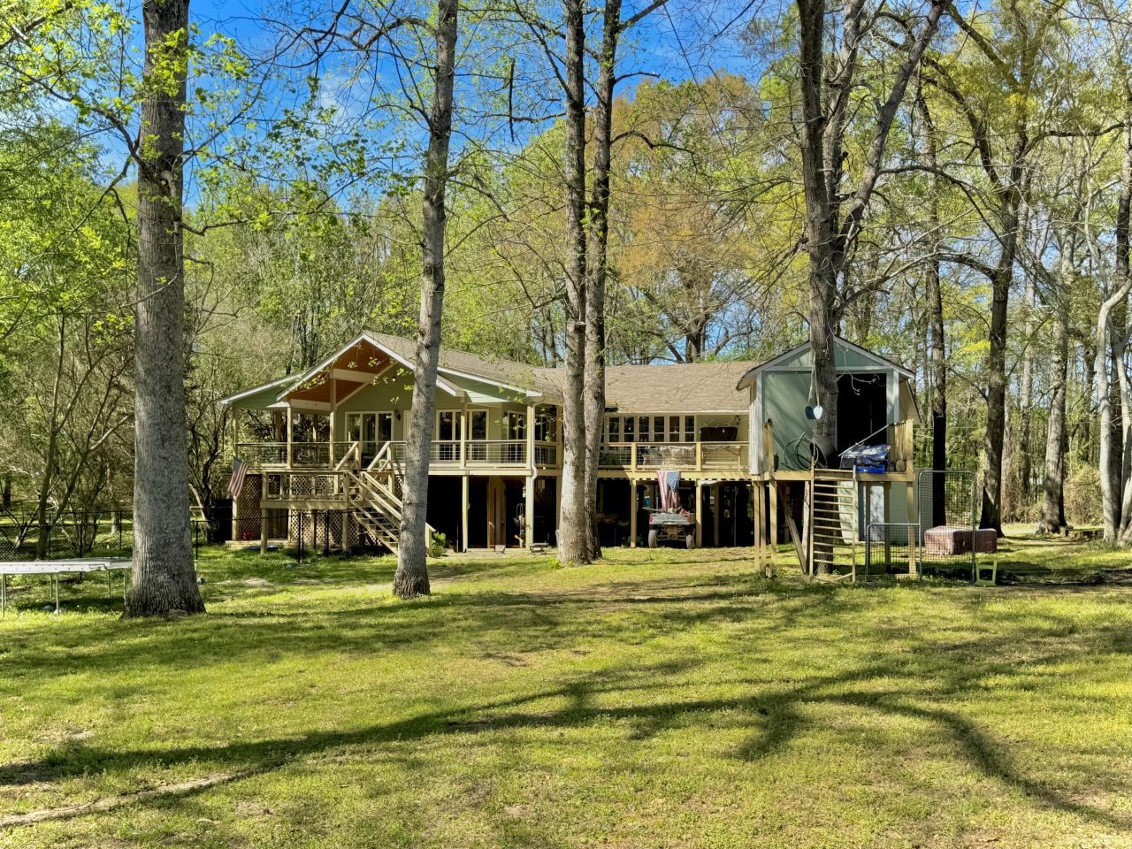 Life on the Tombigbee River awaits... don't miss out on this 3 Bedroom / 4.5 Bath river home with an amazing ground-level entertainment space, 2-slip boat dock, and located near the main channel. All three bedrooms have ensuite bathrooms. The kitchen has a step-up island and updated, stainless steel appliances. There is an additional office/hobby room connected to the Primary Bedroom that could serve as a nursery. There is a convenient fenced area for your dog and tons of downstairs storage. The property also has a storm shelter on-site. Agent did not measure & taxes reflect regular homestead exemption.