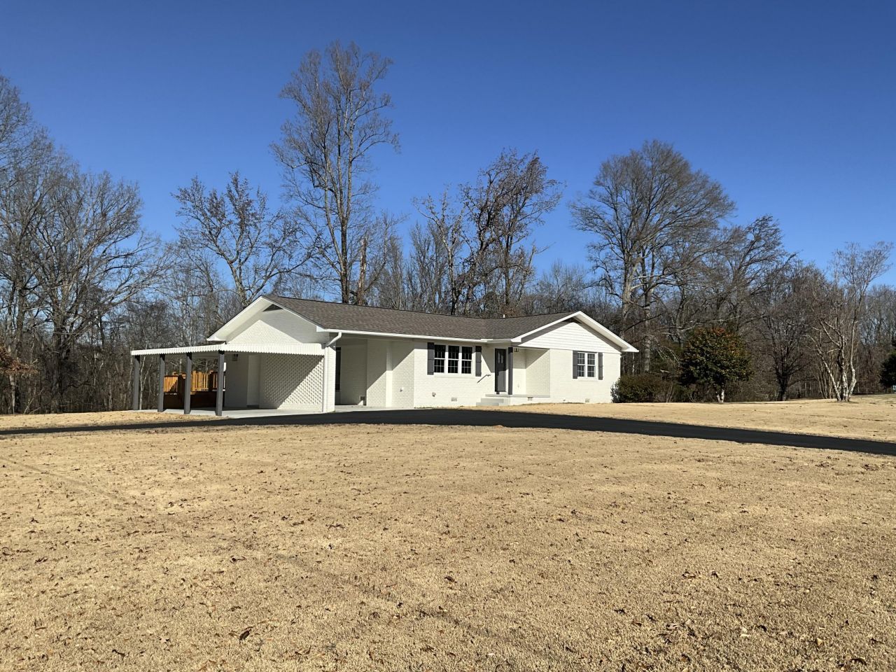 Completely remodeled 3-bedroom, 2-bath home situated on over 12 acres. This property features updated electrical and plumbing, granite countertops, and stainless steel appliances. The inviting living area includes a gas fireplace, perfect for cozy evenings.The spacious primary suite offers a large walk-in tiled shower, double vanity, and separate his-and-her closets. The guest bathroom includes a double vanity and a tiled tub surround. Throughout the home, you'll find abundant storage with ample closet space.Outside, enjoy a well-established yard, a brand-new wooden deck, and a paved circular driveway, creating both beauty and convenience in a peaceful setting.